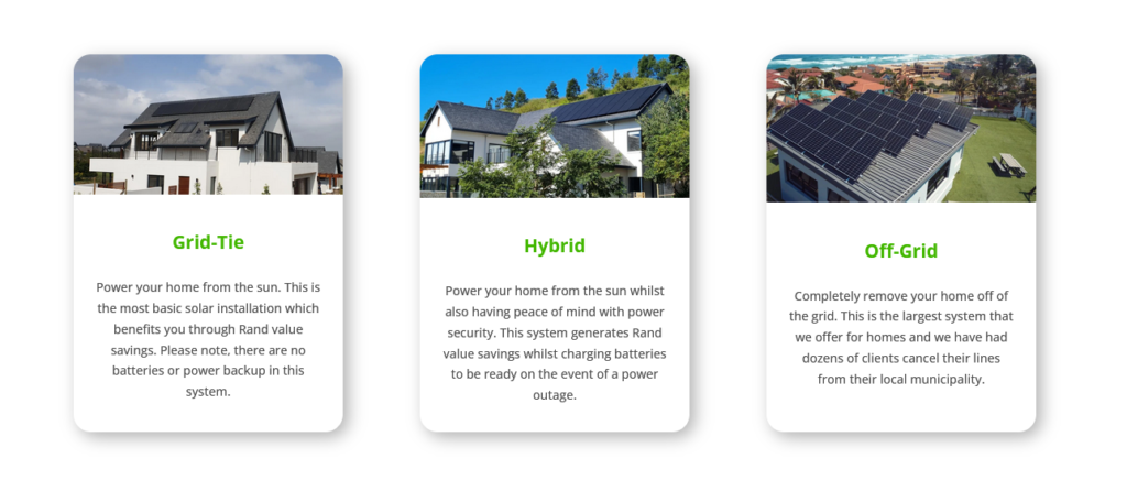 Hybrid solar systems have both on-grid and off-grid capabilities, allowing you to continue running on solar power even if there is load shedding.